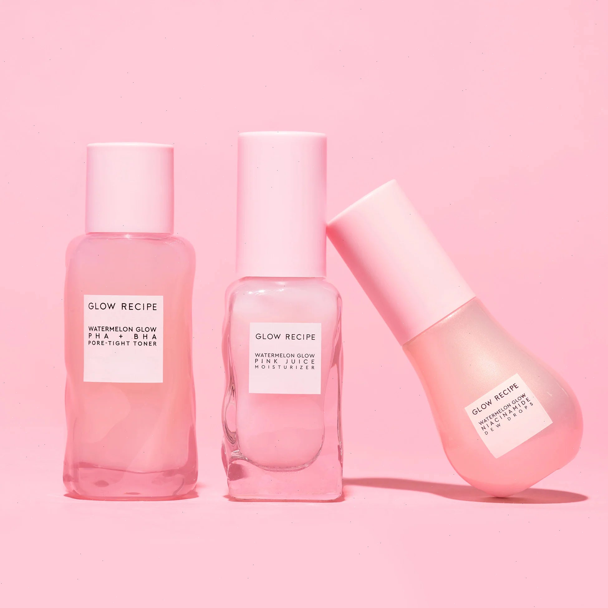Meet the 3-step routine kit made to reveal (real) glass skin no matter what your skin concerns. Featuring our exfoliating & hydrating Watermelon Glow Pore-Tight Toner, brightening and glow-giving Dew Drops, and Pink Juice Moisturizer to deliver dewy, lightweight hydration, this trio is all you need to achieve your healthiest, dewy, reflective glow.